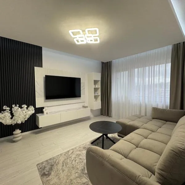 Panoramic SkyView Apartment坐落于彼得罗沙尼,享有山景,提供免费WiFi。 这家公寓提供阳台,享有市景,拥有1间卧室、起居室、平板电视、带冰箱和洗碗机的设施齐全的厨房以及1间带淋浴设施的浴室。1间浴室提供吹风机。 锡比乌机场距离住宿有133公里。