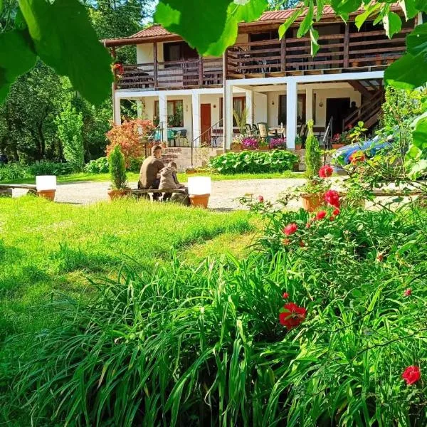 Com jardim, lounge compartilhado e terraço, Leo Green House fornece acomodação em Moara Ungurului com Wi-Fi grátis e vista para a montanha.