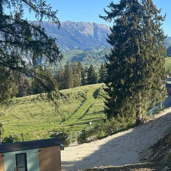 Cabanuta din munti坐落于布拉索夫县的莫伊西德约斯,距离拜恩古堡有不到8.1公里,配备免费WiFi、烧烤设施、花园和免费私人停车位。 这家露营地享有山景,为客人提供露台、休息区、有线频道平板电视、带冰箱和微波炉的设施齐全的小厨房以及带淋浴设施和免费洗浴用品的私人浴室。住宿还配备炉灶以及咖啡机和电热水壶。