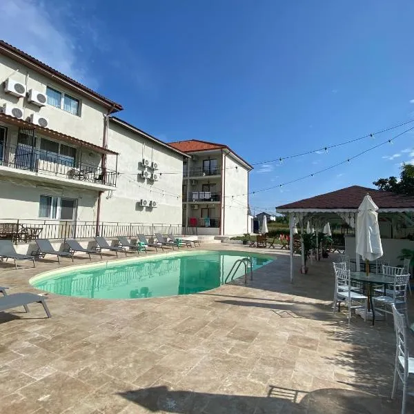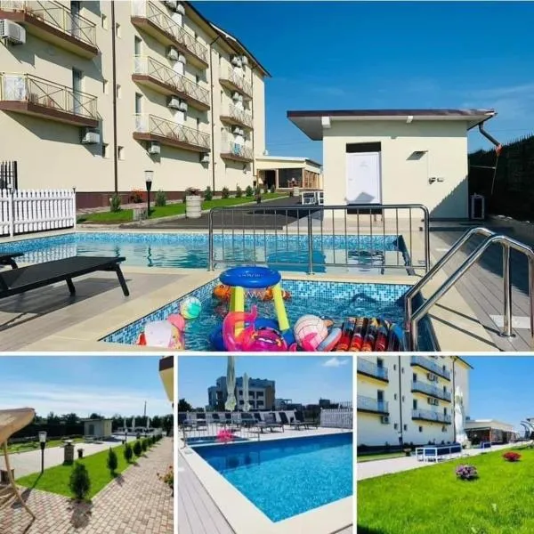 Alessio Hotel Residence fornece acomodação com piscina ao ar livre com funcionamento sazonal, estacionamento privativo grátis, jardim e lounge compartilhado em Costinesti.