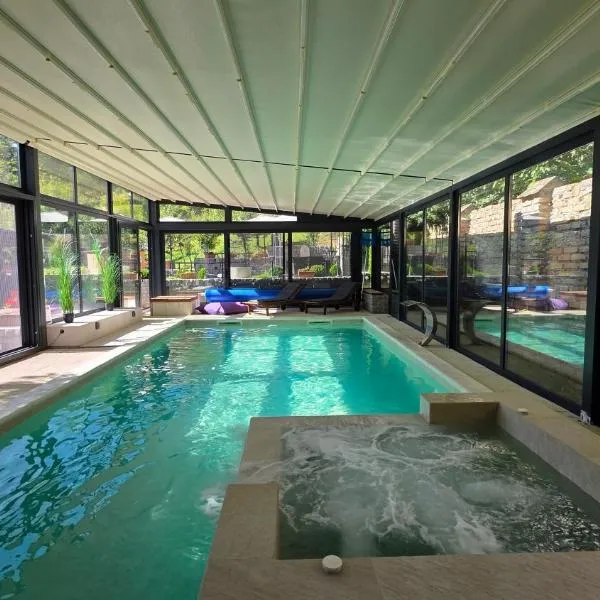 Oaza Spa Fruska Gora位于Sremska Kamenica,提供享有池景和花园景的露台、按季节开放的室外泳池、桑拿房以及热水浴池。这家自助式度假屋配有私人泳池、花园、烧烤设施、免费WiFi和免费私人停车位。 这家空调度假屋配有1间卧室、起居室、带迷你吧和咖啡机的设施齐全的小厨房以及1间带淋浴设施和热水浴池的浴室。这家度假屋还提供平板电视以及1间带免费洗浴用品的浴室。
