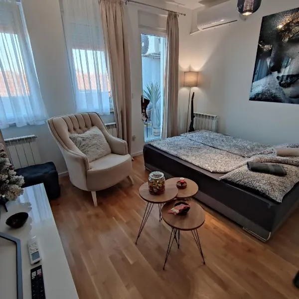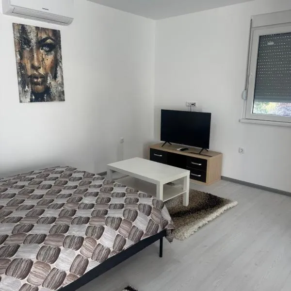 Apartmani Crassula Lux位于中塞尔维亚的Surčin,配有庭院。这家公寓提供免费私人停车位、免费班车服务和免费WiFi。 这家空调公寓配有1间卧室、起居室、带冰箱和咖啡机的设施齐全的厨房以及1间带淋浴设施和免费洗浴用品的浴室。这家公寓还配备平板电视以及1间带吹风机的浴室。 前台工作人员会讲英语、克罗地亚语和塞尔维亚语,可在客人需要时为其提供当地的建议。