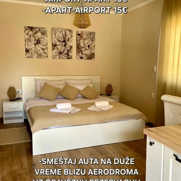 Airport Apartment AIR 2位于Surčin,距离贝尔格莱德体育场有20公里,距离阿达西甘利佳公园有21公里,提供空调。这家公寓坐落于一栋建造于2024年的建筑内,提供免费WiFi和免费私人停车位。 这家公寓配有1间卧室、带有线频道的平板电视、带冰箱和迷你吧的设施齐全的厨房以及1间带淋浴设施的浴室。1间浴室提供免费洗浴用品。