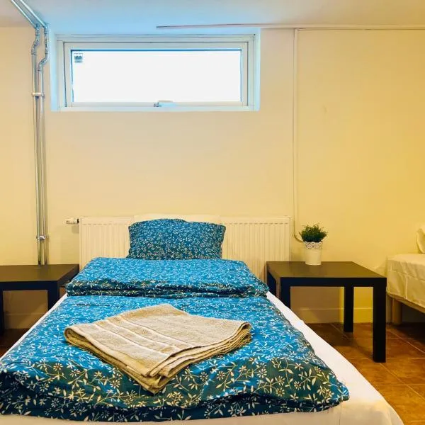Cozy room with two single bed in Landskrona位于兰斯克鲁纳,距离哈尔曼海滩(Halvmanen Beach)有2.8公里。内部提供私人停车位。 这家家庭式住宿配备毛巾和床上用品。 安格霍姆赫尔辛堡机场距离住宿有52公里。