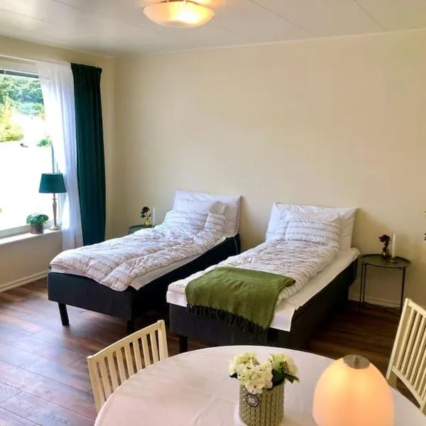 Boende med hotellkänsla i populära Skrea, Falkenberg坐落于法尔肯贝里,配备免费WiFi,距离瓦尔贝里火车站有不到40公里,距离瓦尔贝里堡垒有41公里。这家住宿禁烟,距离耶卡斯乌拉勒德购物中心有35公里。 这家旅馆的所有客房都拥有衣柜、花园景露台、私人浴室、平板电视、床上用品和毛巾。房间为客人提供冰箱。