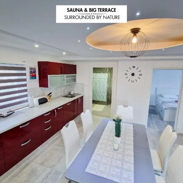 Apartments with Private Saunas - WELLNESS Gobi位于萨维尼统计区的博德森特克,提供免费WiFi和免费私人停车位。客人可以使用桑拿浴室。 每间房间都配备带冰箱的设施齐全的厨房、带沙发床休息区、平板电视以及带淋浴设施和吹风机的私人浴室。住宿还提供微波炉、炉灶和电热水壶。 住宿内部配备露台。客人可以在这家公寓附近体验徒步和垂钓。 Apartments with...