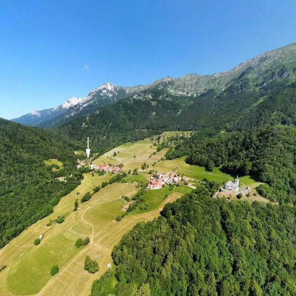 Apartma in sobe Tanja fica em Podbrdo, a 27 km de Aquapark & Wellness Bohinj e a 33 km de Caverna sob Babji zob, e oferece acomodações com Wi-Fi grátis, jardim com um terraço e vista para a montanha.