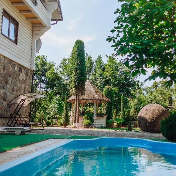 Шале АНСО ligger i Mykulytjyn och erbjuder boende med en säsongsöppen utomhuspool, gratis WiFi och gratis privat parkering för gäster som anländer med bil.