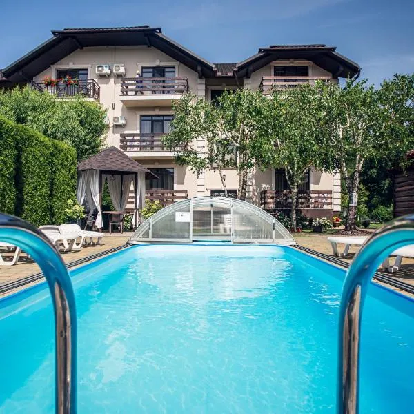 Karpatska Forel features a seasonal outdoor swimming pool, garden, a terrace and restaurant in Svalyava. With a bar, the property also has barbecue facilities.