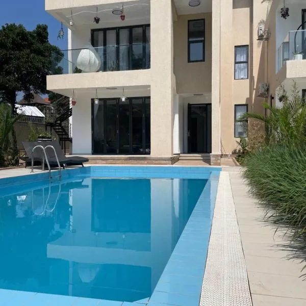White House Entebbe kawuku享有山景,提供阳台,距离教皇保罗纪念碑约有24公里。这家住宿距离恩德培高尔夫俱乐部游乐场有18公里,配备露台和免费私人停车位。 这家空调度假屋配有1间卧室、起居室、带冰箱和电热水壶的设施齐全的厨房以及5间带坐浴盆和热水浴池的浴室。5间浴室提供浴缸、免费洗浴用品、拖鞋和浴袍。