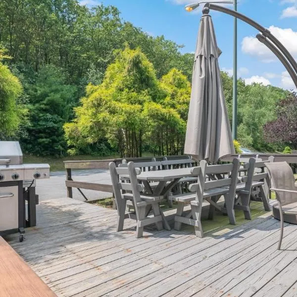 Pocono Chalet,Hot Tub,Arcade,Fireplace, Lake,Pool, Pet friendly, near Jim Thorpe No extra fees to use amenities位于Towamensing Trails,配备带免费WiFi的花园景客房,配备花园、露台和网球场。这家度假屋配有免费私人停车位。客人可以在周边地区体验徒步、滑雪和乒乓球等活动。...