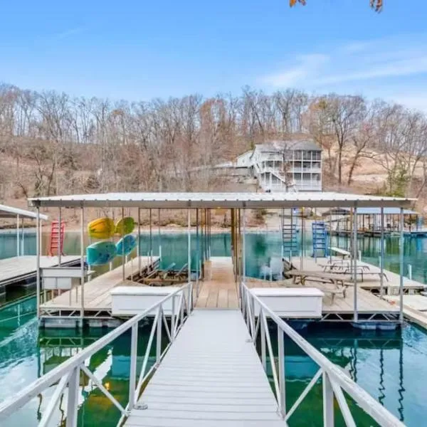 The best lake view in Ozark. 位在歐札克湖,設有季節性室外游泳池和露台。這間住宿提供私人游泳池、WiFi(免費)和免費私人停車位。 這間空調公寓有 2 間臥室、起居室,廚房設備齊全且附冰箱和咖啡機,以及 2 間附浴缸和吹風機的衛浴。住宿提供衛星頻道平面電視。 韋恩斯維爾-聖羅伯特區域機場距離住宿 94 公里。