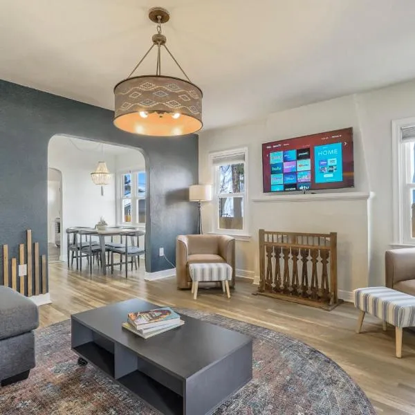 Purple Mountain Majestic Retreat享有山景,配备花园和庭院,距离帕尔默公园约有3.1公里。这家住宿的客人可以使用桌球台、飞镖靶和免费私人停车位。 这家空调度假屋配有5间卧室、起居室、带冰箱和咖啡机的设施齐全的厨房以及3间带淋浴设施和热水浴池的浴室。3间浴室配有浴缸,也配备免费洗浴用品,提供毛巾和床上用品。 这家度假屋提供热水浴池。