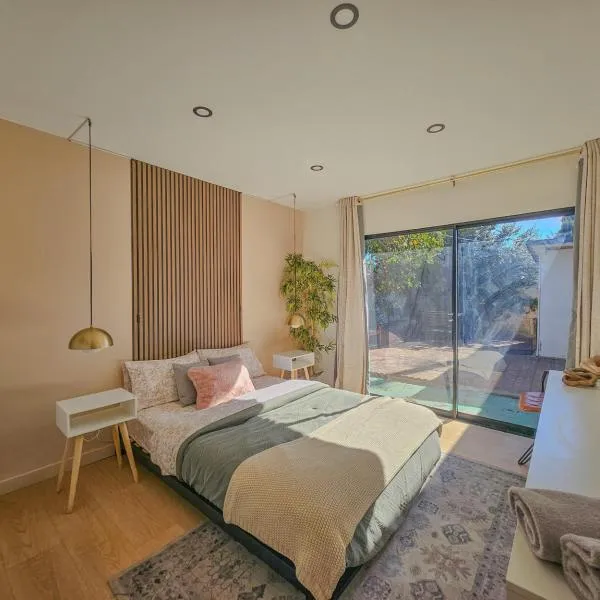 Just The Two Of Us -Romantic Pool View And Private Entry Sleeps 2 Near CSUN CSUN位于北山,配备带免费WiFi的花园景客房,配备户外游泳池和露台。这家自助式公寓配有私人泳池、花园和免费私人停车位。 这家公寓享有池景,配有1间卧室以及1间带免费洗浴用品和吹风机的浴室。