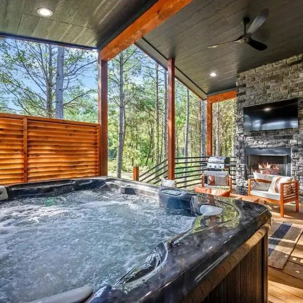 Featuring air-conditioned accommodation with a balcony, Hot Tub and Forest Views Broken Bow Group Haven! is located in Broken Bow. This holiday home provides a spa and wellness centre.