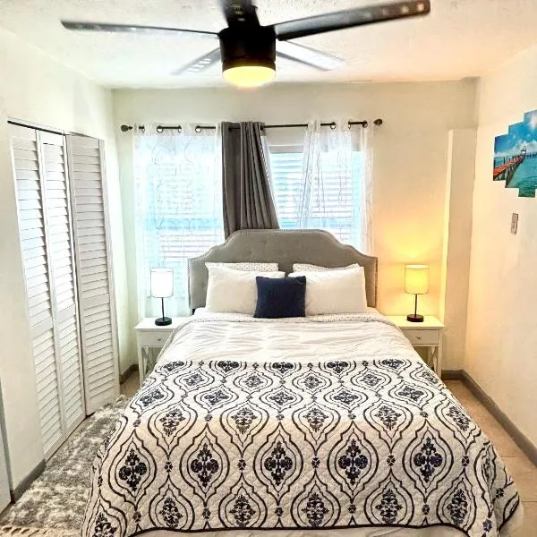 (B) Casa Azul. Minutes from the Beach & Mall位于北棕榈滩,距离激流水上公园有14公里,距离布里克尔斯海洋高尔夫球场有17公里,距离棕榈滩县会议中心有23公里。这家住宿距离棕榈滩港有10公里,为客人提供免费WiFi,内部提供私人停车位。 这家空调公寓配备1间卧室以及1间带浴缸或淋浴设施和吹风机的浴室。这家公寓也为客人提供厨房和1间浴室。