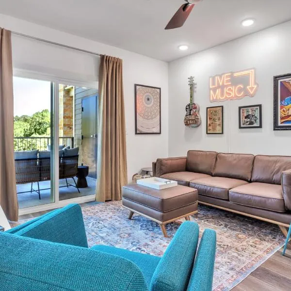 Whiskey River - Texas Music Theme in Historic Gruene, Riverfront on the Guadelupe River坐落于得克萨斯州的新布朗费尔斯,拥有庭院。这家住宿的客人可以使用阳台、免费私人停车位和免费WiFi。...