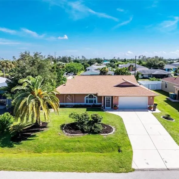 Rotonda Pool Oasis Near Beaches - Sleeps 9 享有池景,設有免費自行車租借服務、室外游泳池和露台,距離漁人村(Fishermen's Village)約 40 公里。這間度假屋設有私人游泳池、花園、烤肉設備、WiFi(免費)和免費私人停車位。 這間空調度假屋有 3 間臥室、起居室,廚房設備齊全且附冰箱和咖啡機,以及 3...