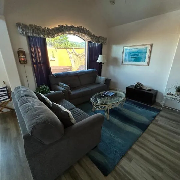 Stunning 360 Ocean Views, Near Redwoods NP!位于Smith River,享有海景,提供免费WiFi。 这家空调公寓配有1间卧室、起居室、带冰箱和咖啡机的设施齐全的厨房以及1间带热水浴池和免费洗浴用品的浴室。这家公寓还提供电视以及1间带吹风机的浴室。 这家公寓的客人可以使用热水浴池。 德尔诺特县地区机场距离住宿有35公里。