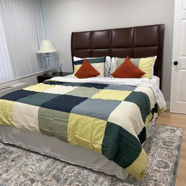 Modern 2bed 2 bath heart of Townson suite位于陶森,配备带免费WiFi的市景客房,配备季节性室外泳池和共用休息室。这家公寓配有免费私人停车位。客人可以在周边地区体验骑行和乒乓球等活动。 这家空调公寓配有1间卧室、起居室、带冰箱和咖啡机的设施齐全的厨房以及2间带淋浴设施和免费洗浴用品的浴室。2间浴室配有浴缸,也配有吹风机,提供毛巾和床上用品。