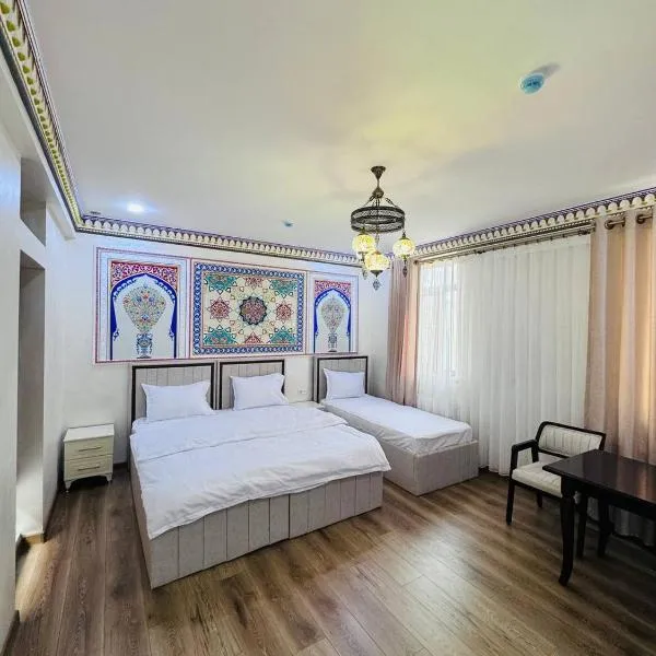 MUSLIMA HOTEL Boutique di Buxoro mempunyai taman dan bar. Tempat penginapan ini menyediakan kaunter penerimaan tetamu 24 jam, shuttle lapangan terbang, khidmat bilik dan WiFi percuma.