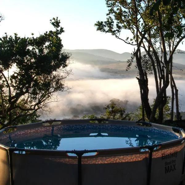 Açık yüzme havuzu ve 24 saat açık resepsiyon olanakları sunan Chalet 1 Camping Style at Cynthias Country Farmstay Outside bathroom tesisi Hartbeespoort şehrinin Broederstroom semtinde, Eagle Canyon...