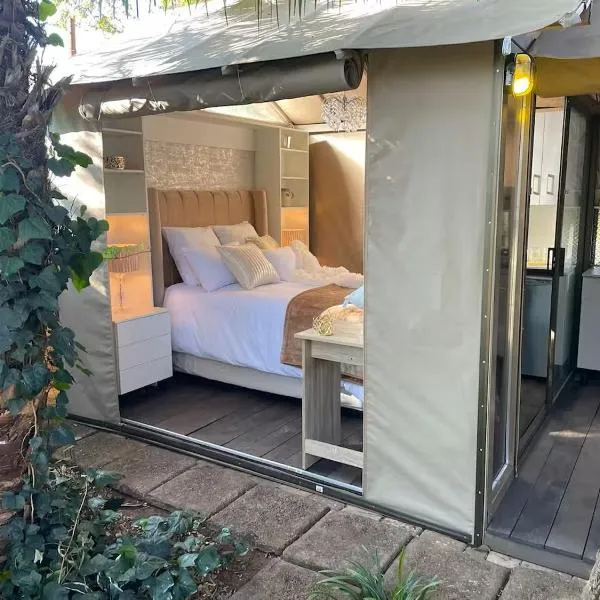 African Paradise - Garden Glamping - Outdoor Shower位于伯诺尼,距离萨普斯机械学校高尔夫俱乐部有2.5公里,提供户外游泳池、免费私人停车位、花园和露台。这家住宿配备礼宾服务,还为客人提供烧烤设施。住宿配备机场交通服务和自行车租赁服务。 这家旅馆的客房配有衣柜。