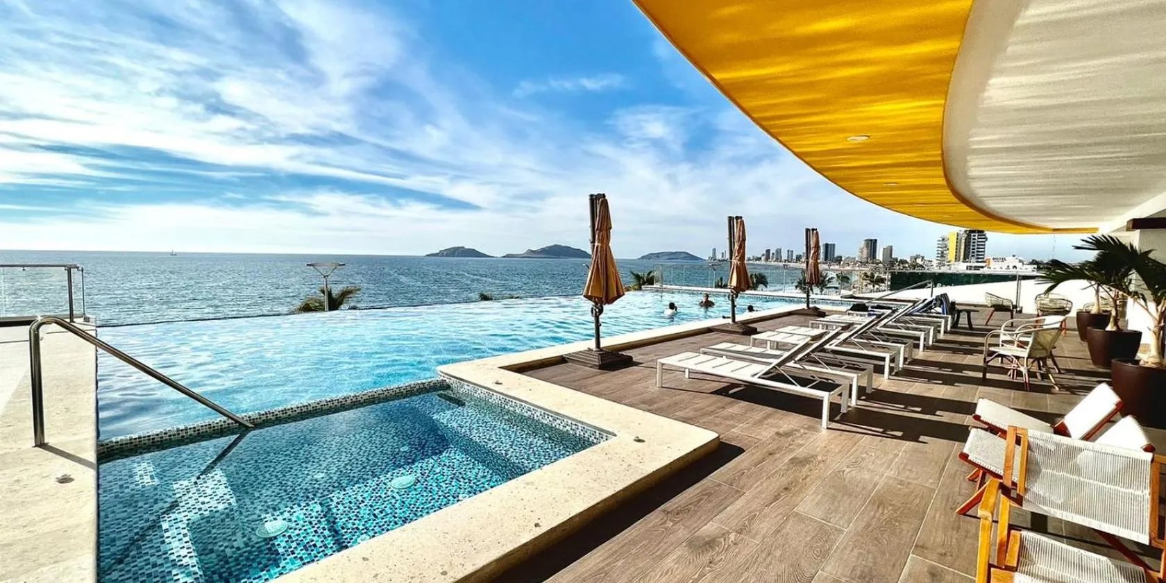 2BR-3BA Condo Block from Beach w Rooftop Jacuzzi, que cuenta con piscina al aire libre, zona de playa privada y terraza, ofrece alojamiento en Mazatlán con wifi gratis y vistas a la piscina.