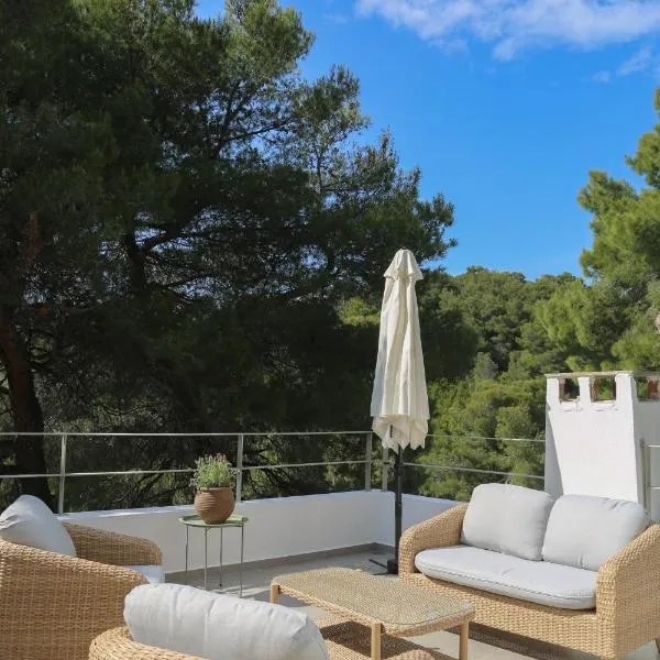 Poseidon villa m ammos se nachází v destinaci Skiathos a poskytuje zahradu, sdílený lounge, terasu a ubytování s bezplatným Wi-Fi a výhledem na město.