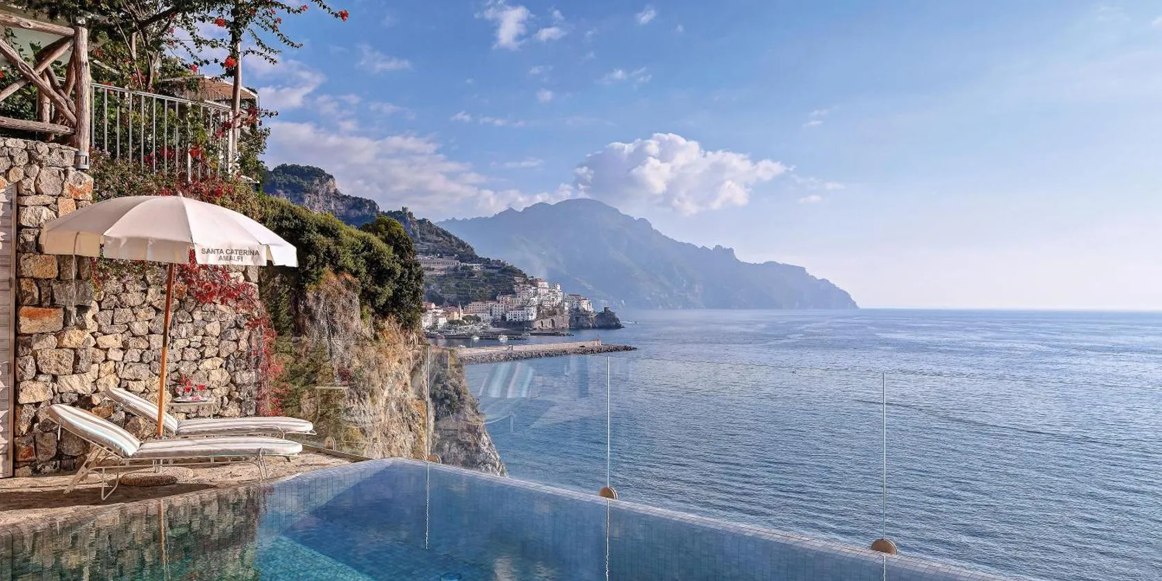 Das Hotel Santa Caterina bietet einen atemberaubenden Blick auf die Amalfiküste und ist in einer Jugendstilvilla untergebracht, die auf einem Felsen mit Meerblick erbaut wurde.