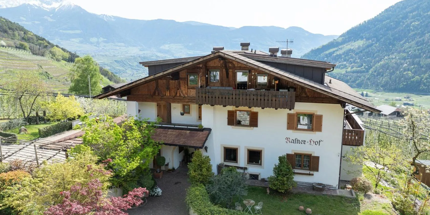 Hotel Garni Partaneshof stojí uprostřed vlastních sadů a vinic, 20 minut chůze od centra Merana. Najdete v něm bazén a příjemnou zahradu.