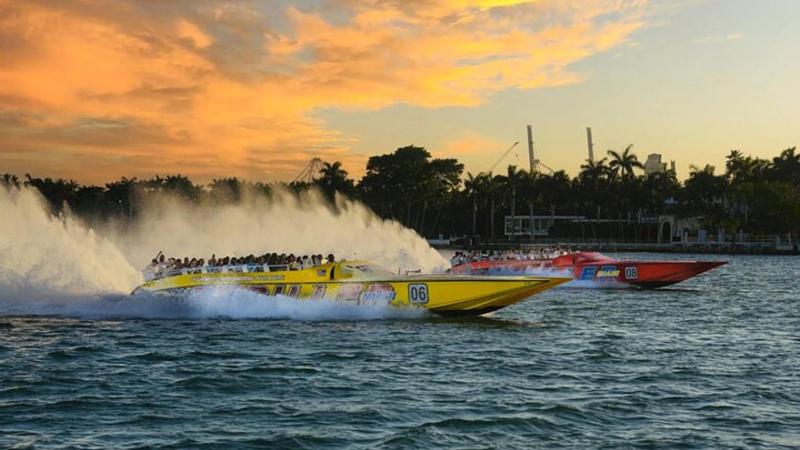 マイアミ海岸を街の景色を眺めながら、スリル満点のスピードボート乗船(45分間)