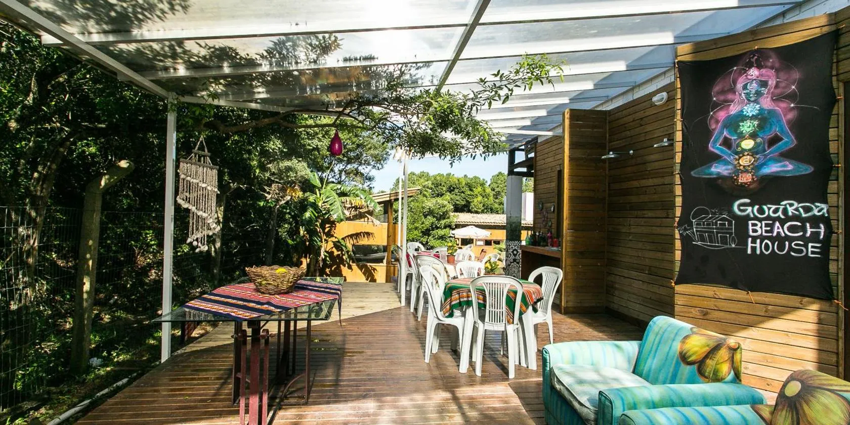 Guarda Encantada Surf Hostel se află pe malul mării în Guarda do Embaú, la mai puțin de 1 km de Praia da Guarda și la 34 km de Autogara Garopaba.
