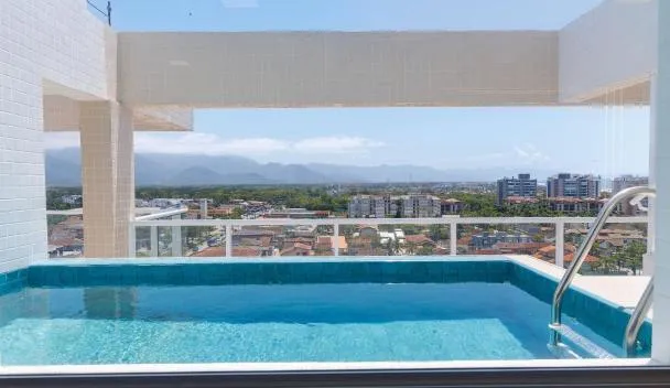 Casamar paraíso na praia com a vista do mar dos sonhos piscina e spa fica no Guarujá e fornece acomodação com ar-condicionado e Wi-Fi grátis, além de acesso a uma piscina ao ar livre e um terraço ao...