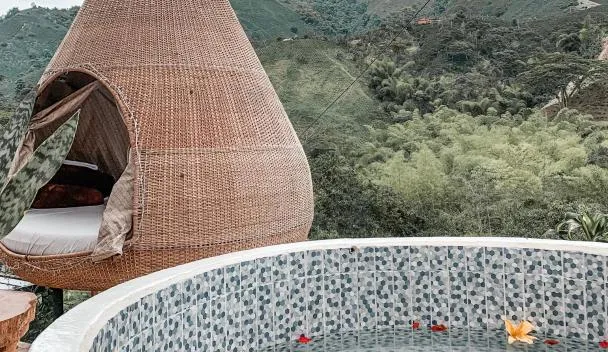 Die Unterkunft Glamping Orosierra mit Stadtblick in Chinchiná bietet Übernachtungsmöglichkeiten mit einem Außenpool, einem Garten, einer Terrasse und einem Restaurant.
