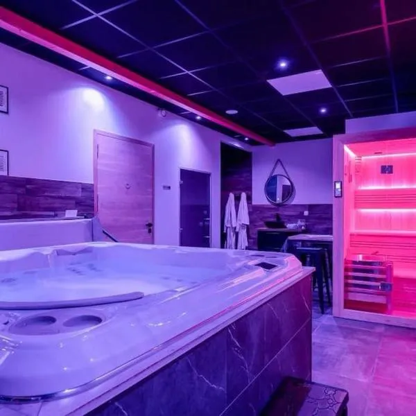 Gîte avec son SPA privatif se nachází v destinaci Le Nouvion-en-Thiérache a poskytuje bezplatné Wi-Fi, zahradu, terasu a bar. Ubytování má masážní vanu.