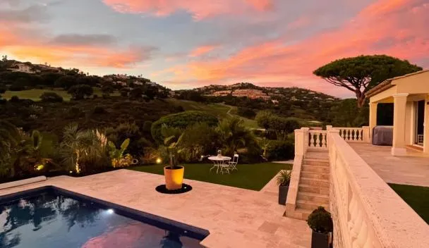 Die Unterkunft Casa Louise - Piscine et jacuzzi privatifs, die über eine Terrasse verfügt, bietet Übernachtungsmöglichkeiten in Sainte-Maxime mit kostenlosem WLAN und Poolblick.