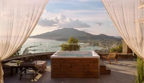 Ad Argásion, Sueño LUXURY VILLA, in Argasi 180 Iconic Sea View offre una terrazza con vista sulla città e sul mare, oltre a disporre di piscina esterna stagionale, centro fitness e vasca idromassaggio...
