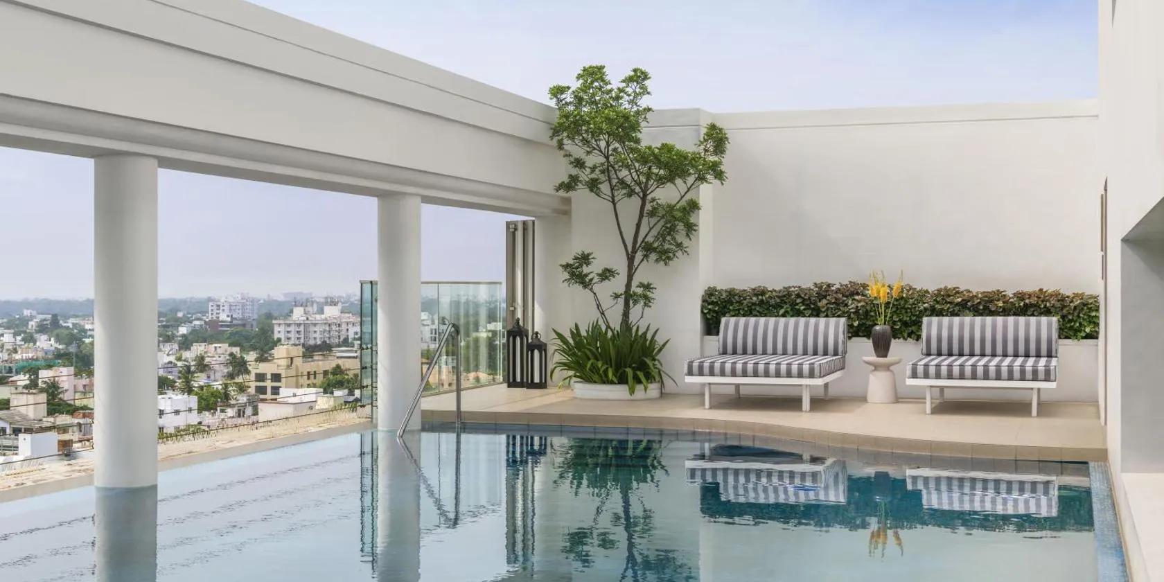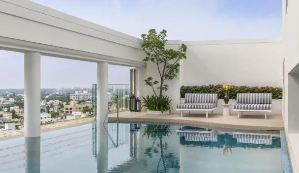 The 5-star Park Hyatt Chennai features a spa with rooftop infinity pool and fitness centre offering panoramic city views and views of the Guindy Forest Reserve.