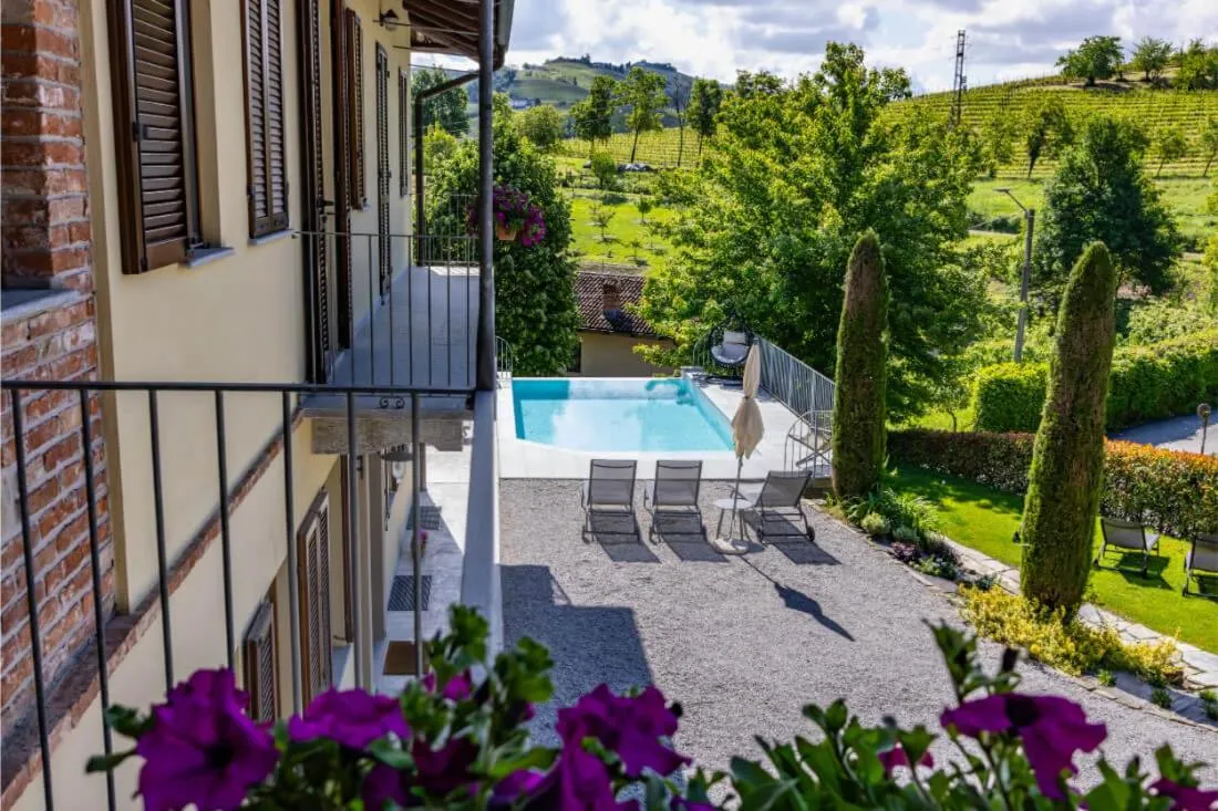 Locanda del Pilone offers spectacular panoramic views of the Langhe countryside from its hilltop location just 5 km from the pretty Piedmont town of Alba.