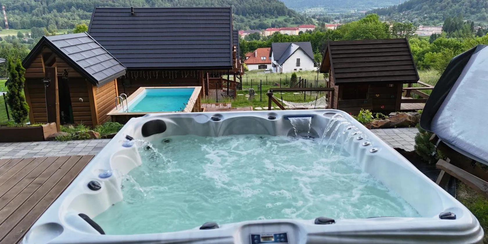 Bieszczadzka Osada Saunowisko w cenie jacuzzi na wyłączność, sauna basen se nachází v destinaci Solina a nabízí bezplatné Wi-Fi, zahradu s sezónním venkovním bazénem, výhled na hory a volný vstup do...