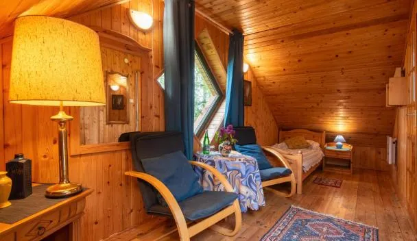 Domki Przy Pracowni nhìn ra khu vườn, có Wi-Fi miễn phí và chỗ đậu xe riêng miễn phí, tọa lạc ở Wytowno, cách Vườn quốc gia Słowiński 31 km.