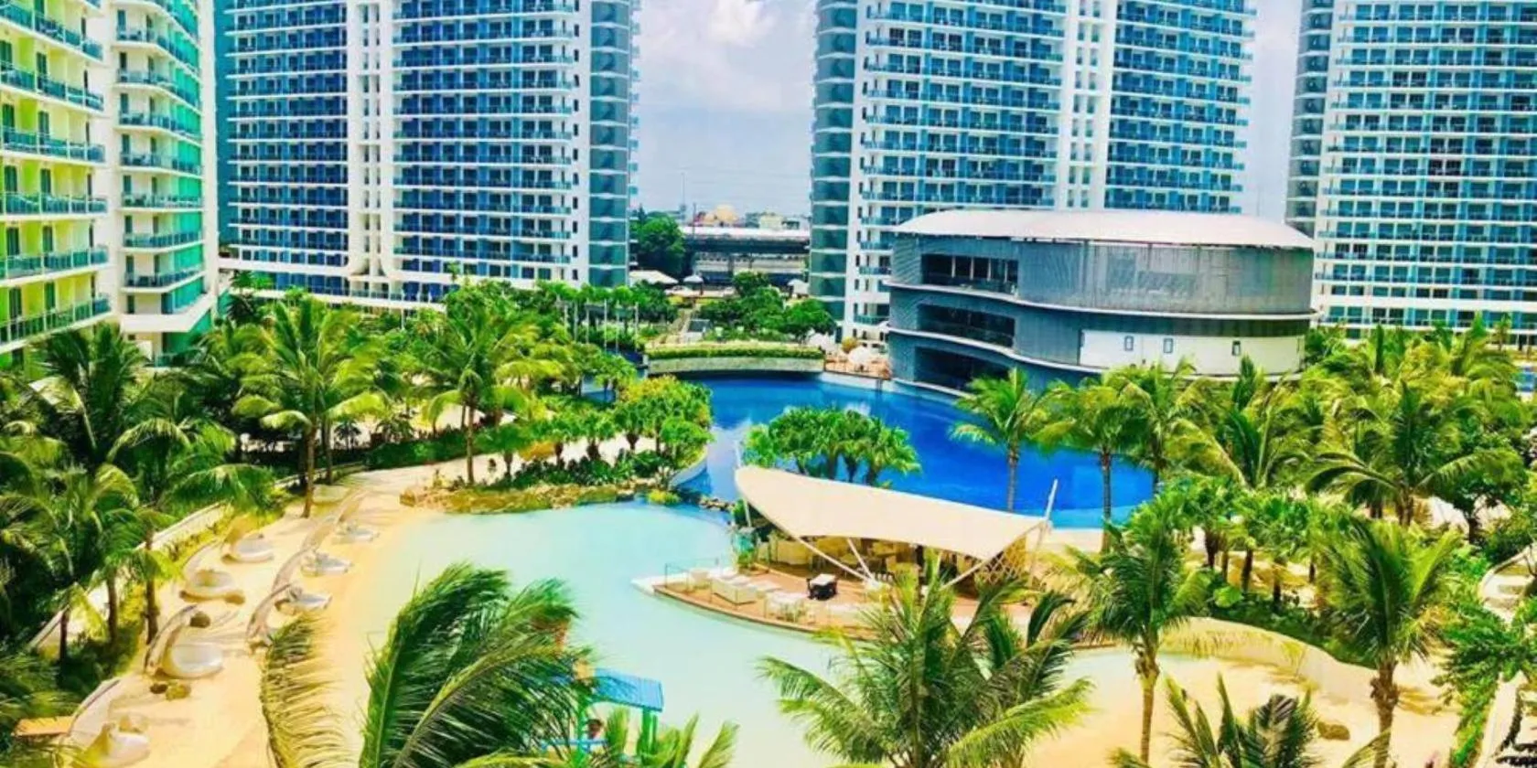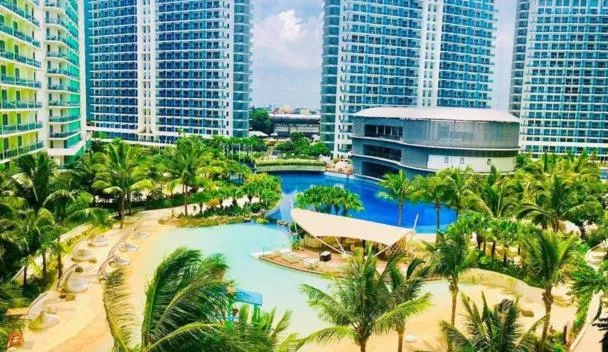 Die Unterkunft Luxury 1BR BayFront Staycation - Free Wi-Fi, Swimming POOL, Near Airport, MOA and PICC verfügt über einen Pool, einen Garten sowie eine Gemeinschaftslounge und Bergblick.
