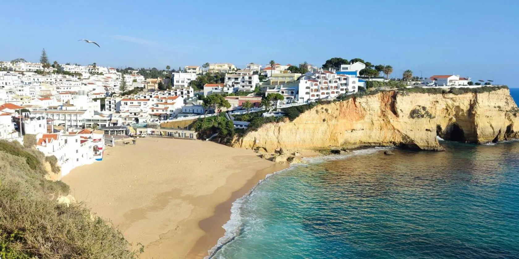 This seafront Mediterranean-style aparthotel offers panoramic views of Albufeira from its outdoor pools.