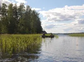 Saimaan Kodikas 位在薩翁林納,設有私人海灘和露台。這間空調住宿距離薩翁林納火車站(Savonlinna Train Station) 43 公里,為住客提供 WiFi(免費),館內提供私人停車位。 這間公寓設有 1 間臥室、附電視的起居室、設備齊全的廚房,以及 1 間附淋浴設施和免費盥洗用品的衛浴。這間公寓提供毛巾和寢具。 莎翁林納機場距離住宿 32 公里。