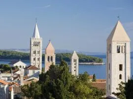 Rose rooms on the island of Rab位于拉布,距离帕多瓦广场沙滩(Plaza Val Padova Sandy Beach)有6分钟步行路程,提供花园和免费私人停车位。每间客房都配有海景阳台和免费WiFi.