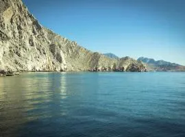 Perched on a rock face, this resort offers panoramic views of the spectacular Musandam shoreline. It offers an outdoor pool and an on-site diving school with professional instructors.