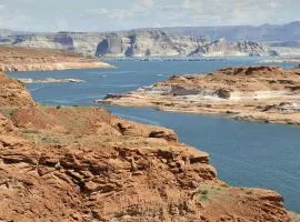 Die Unterkunft Cliff Views - Hot Tub - SUPs - Boat Parking - Sleeps 16 verfügt über Bergblick und Übernachtungsmöglichkeiten mit einem Garten und einem Balkon, ungefähr 15 km von Antelope Canyon...