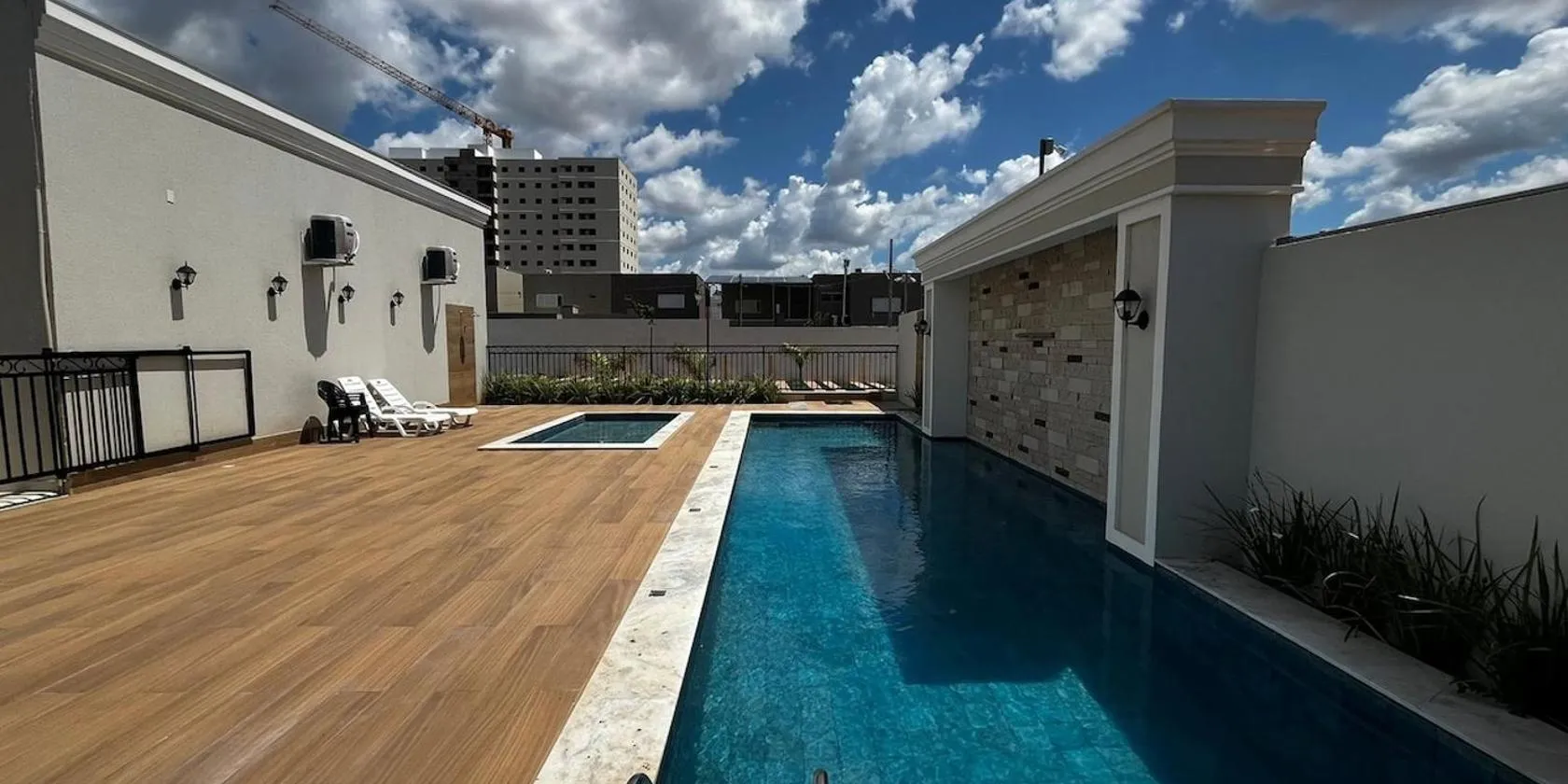 Objekat Apto 3 Quartos com Ar, Piscina, Garagem - Cuiabá nudi smeštaj u gradu Kuiaba sa besplatnim WiFi internetom i pogledom na bazen, kao i bazen na otvorenom, fitnes centar i vrt.