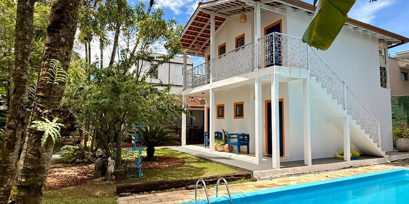 Casa 300 mts da praia har en terrass, grillmöjligheter och erbjuder boende i Juquei med gratis WiFi och utsikt över poolen.